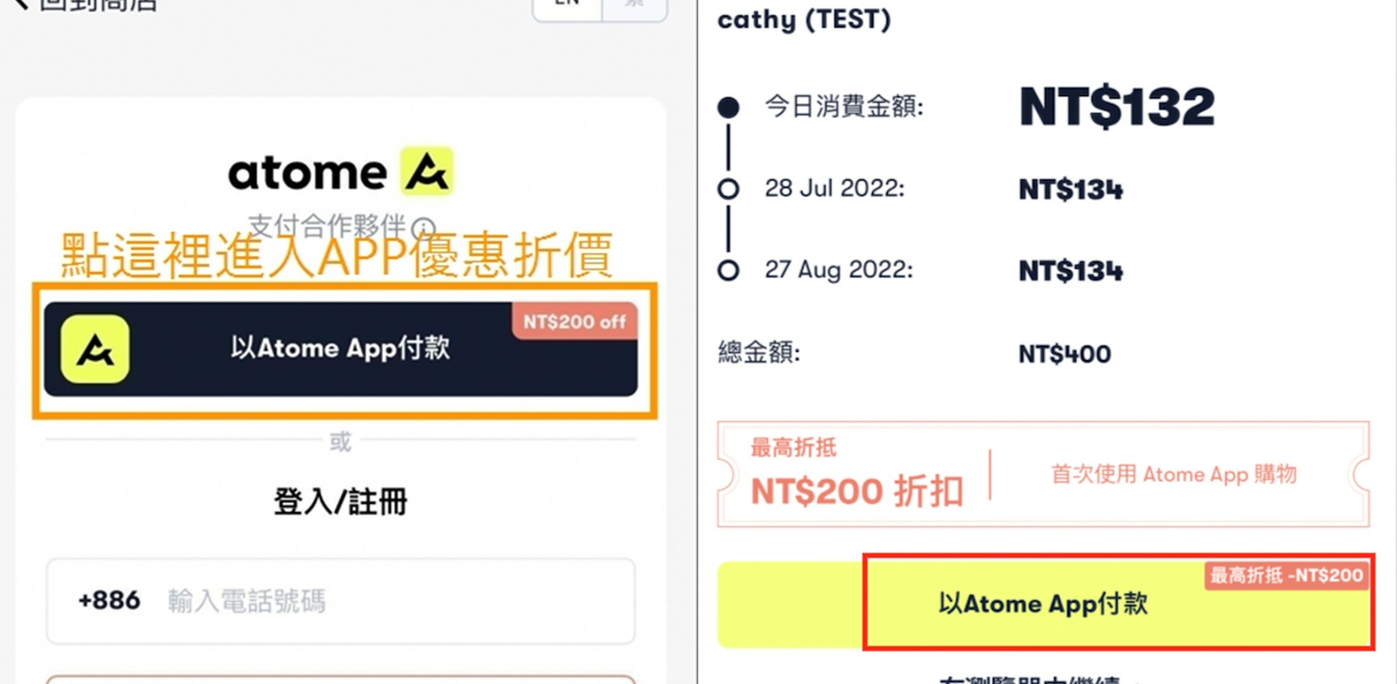 ▍特別優惠 2 ▍使用Atome付款享0%利率分三期,再送$200元現折優惠