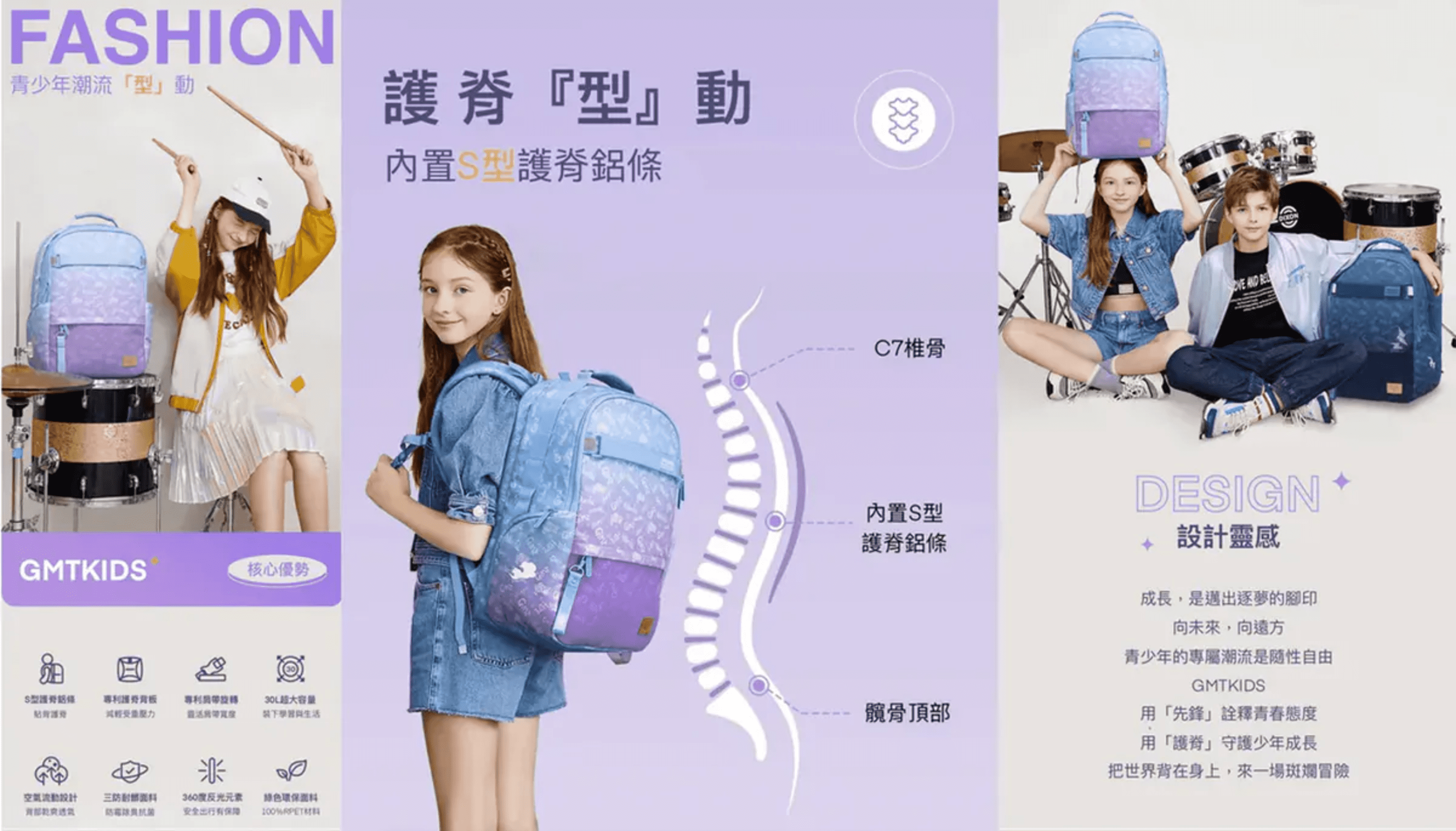 GMTKIDS 挪威耐髒抗菌護脊書包
